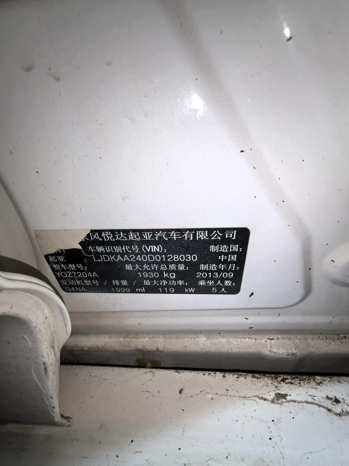 初次登记日期 2013-12-13 车辆名称 起亚牌