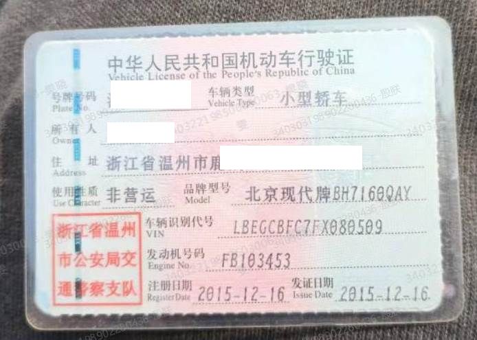 车辆归属地 浙江省温州市 车辆停放仓库 安徽省蚌埠市五河县