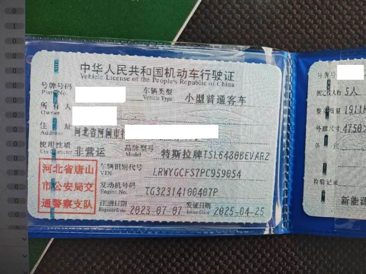 车牌号 冀****** 品牌 特斯拉