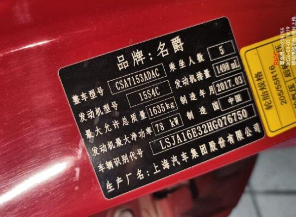 初次登记日期 2017-12-26 车辆名称 名爵 锐行