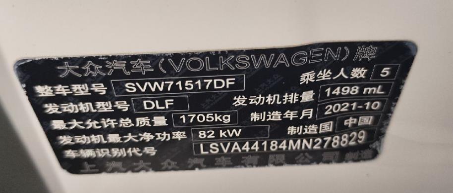 初次登记日期 2022-01-11 车辆名称 大众 朗逸