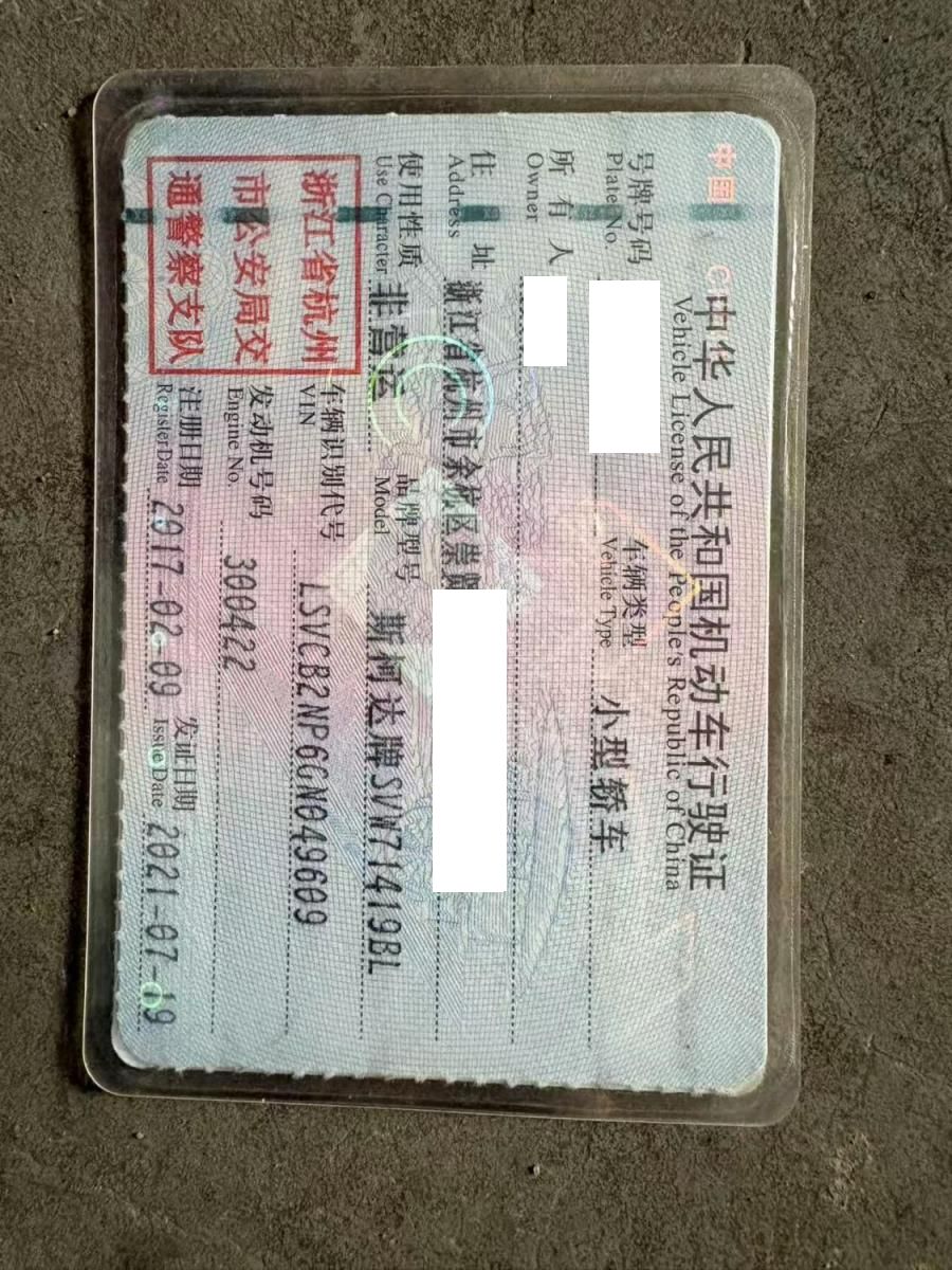 车牌号 浙****** 品牌 斯柯达