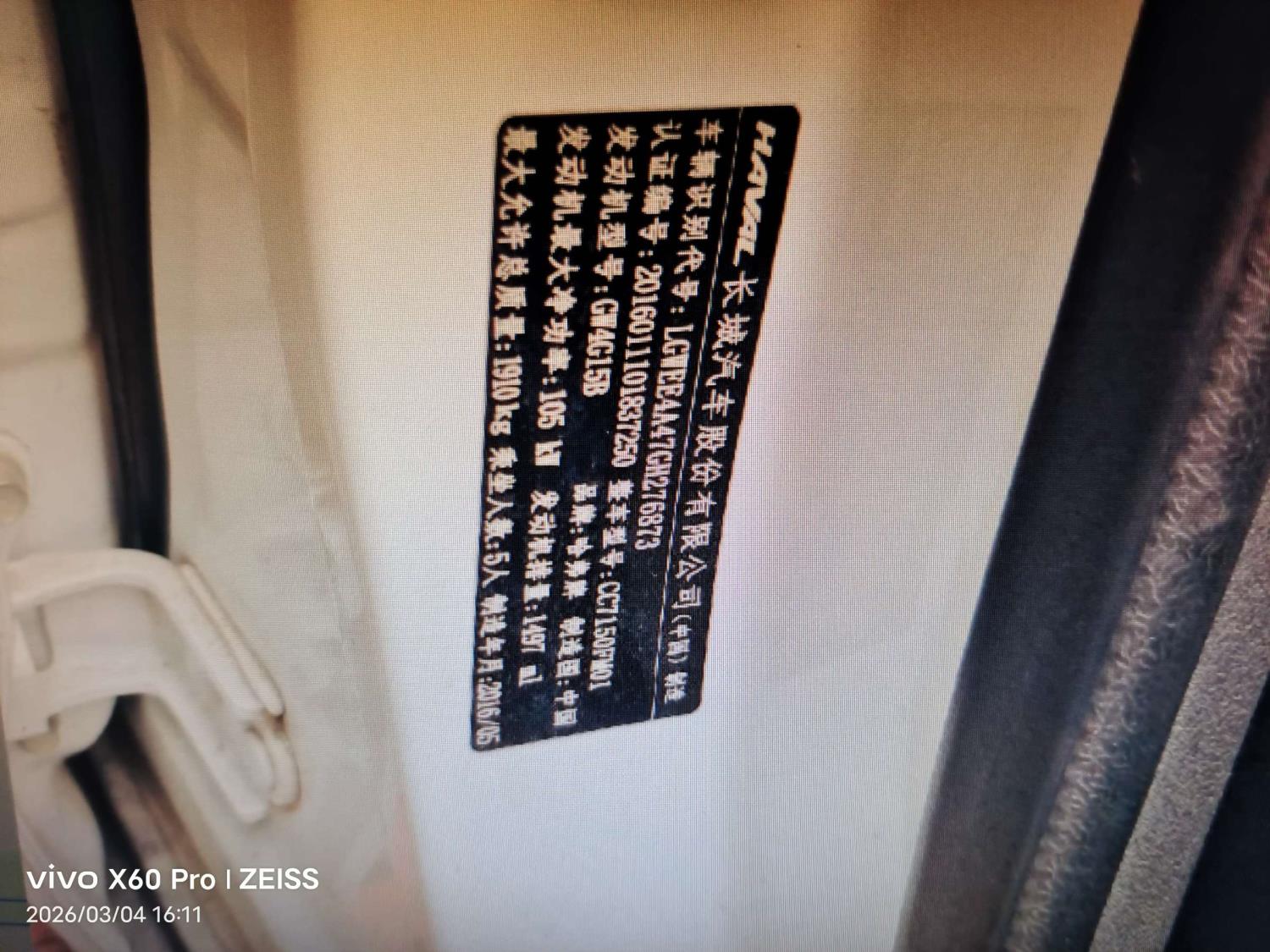 初次登记日期 2016-09-06 车辆名称 哈弗H2
