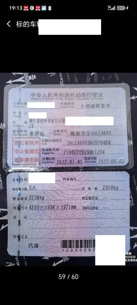 车牌号 浙****** 品牌 路虎