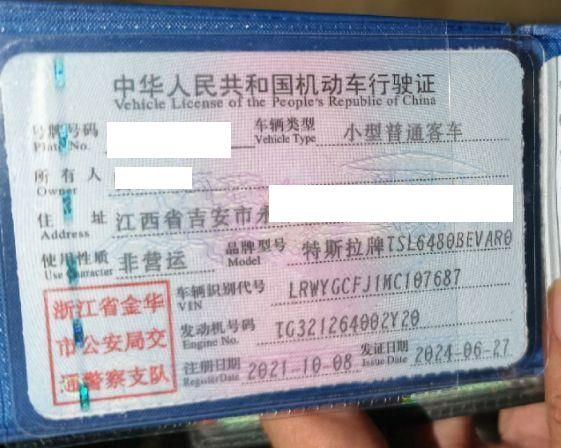 初次登记日期 2021-10-08 车辆名称 特斯拉 Model