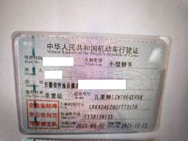 车牌号 皖****** 品牌 五菱