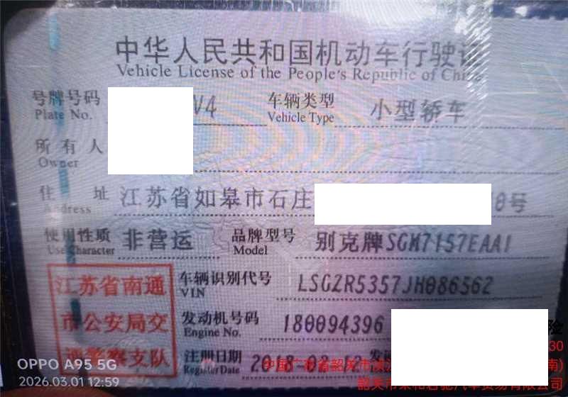 初次登记日期 2018-02-12 车辆名称 别克 君威