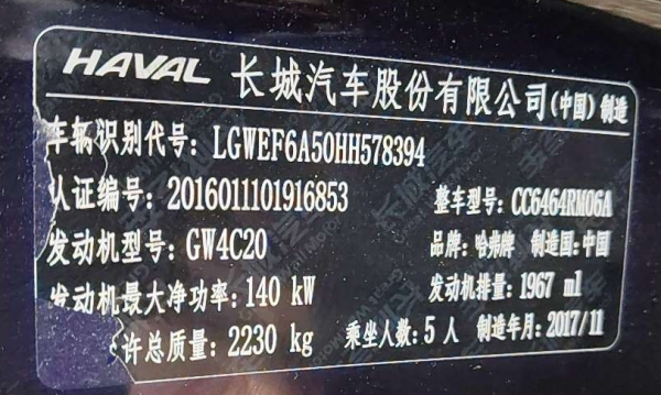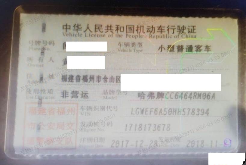 初次登记日期 2017-12-28 车辆名称 哈弗牌