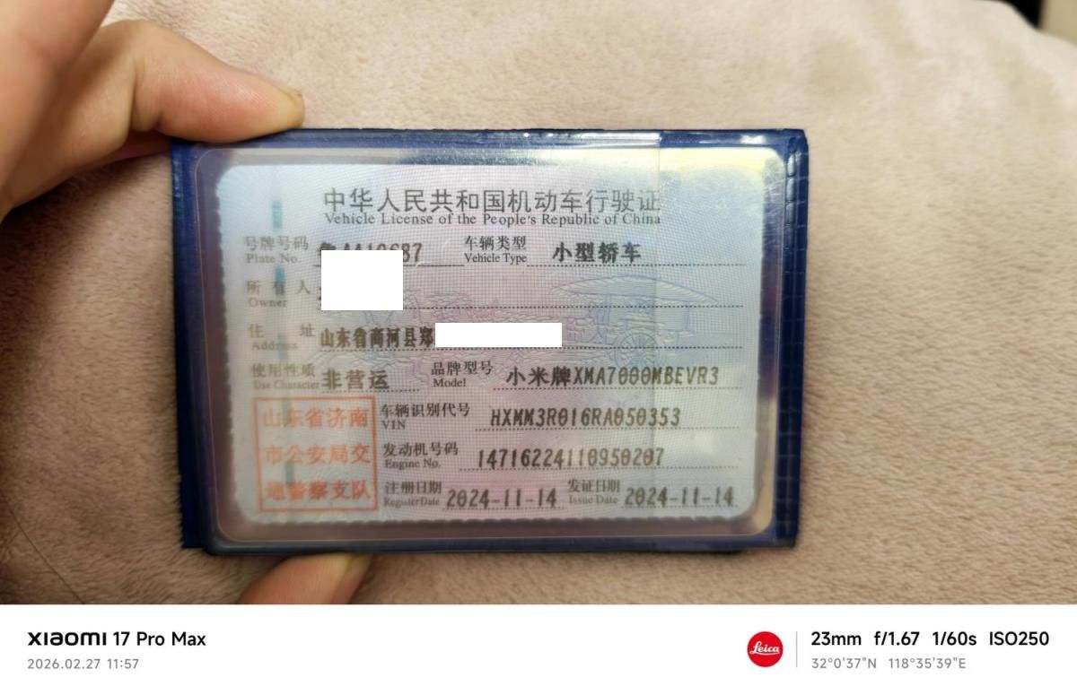 车牌号 鲁****** 品牌 小米
