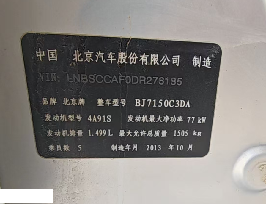 初次登记日期 2013-11-11 车辆名称 北京汽车
