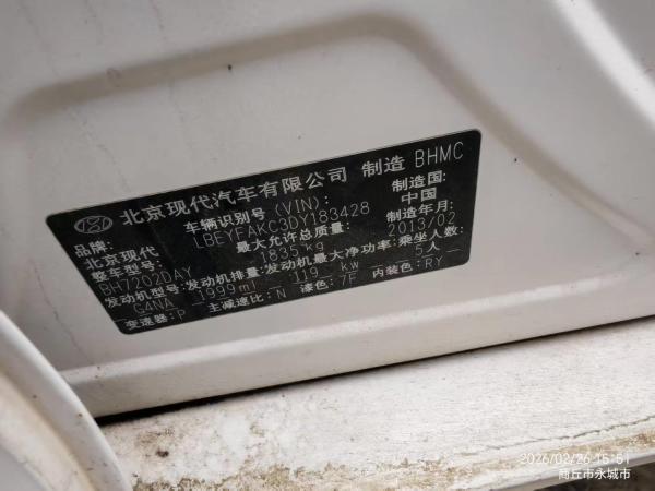 初次登记日期 2013-04-12 车辆名称 现代 索纳塔