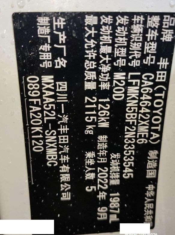 车牌号 粤****** 品牌 丰田