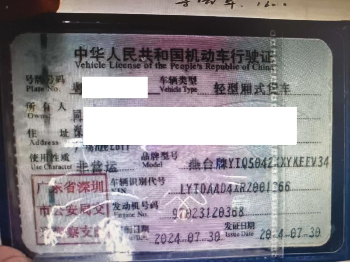 车辆归属地 广东省深圳市 车辆停放仓库 广东省惠州市惠州市