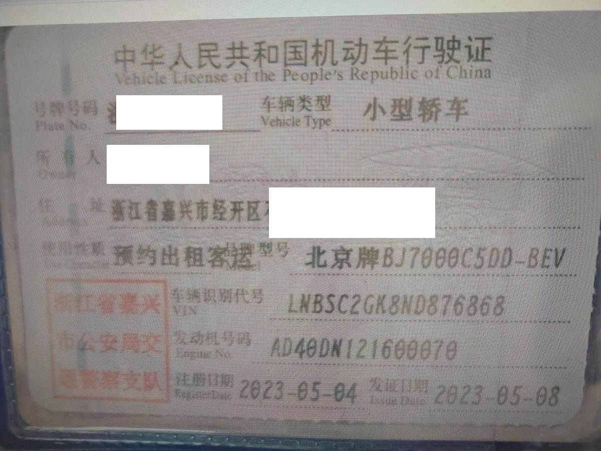 初次登记日期 2023-05-04 车辆名称 北京汽车 北京