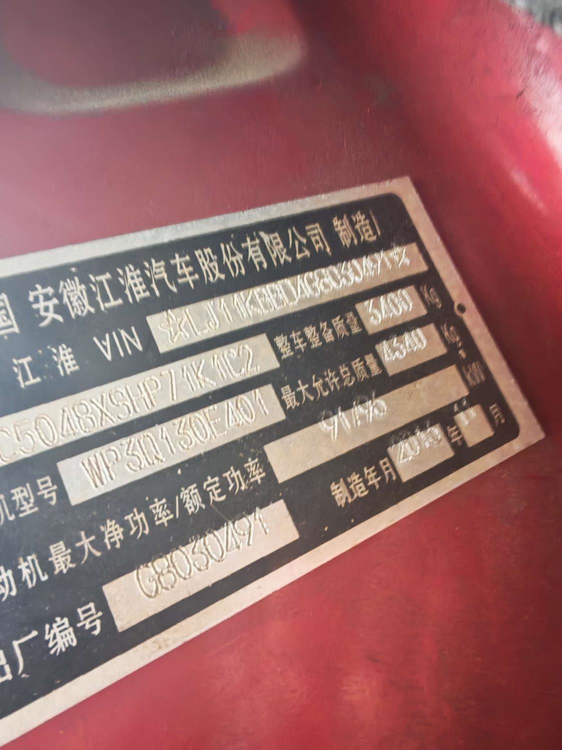 车牌号 浙****** 品牌 江淮