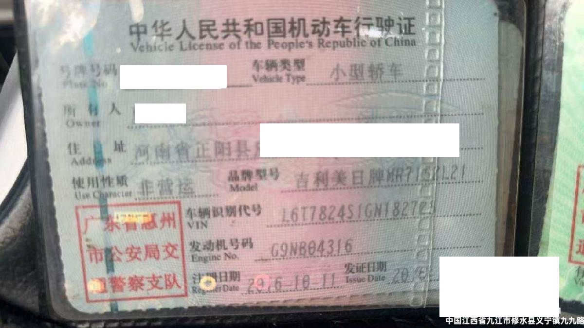 车辆归属地 广东省惠州 车辆停放仓库 江西省九江市九江市