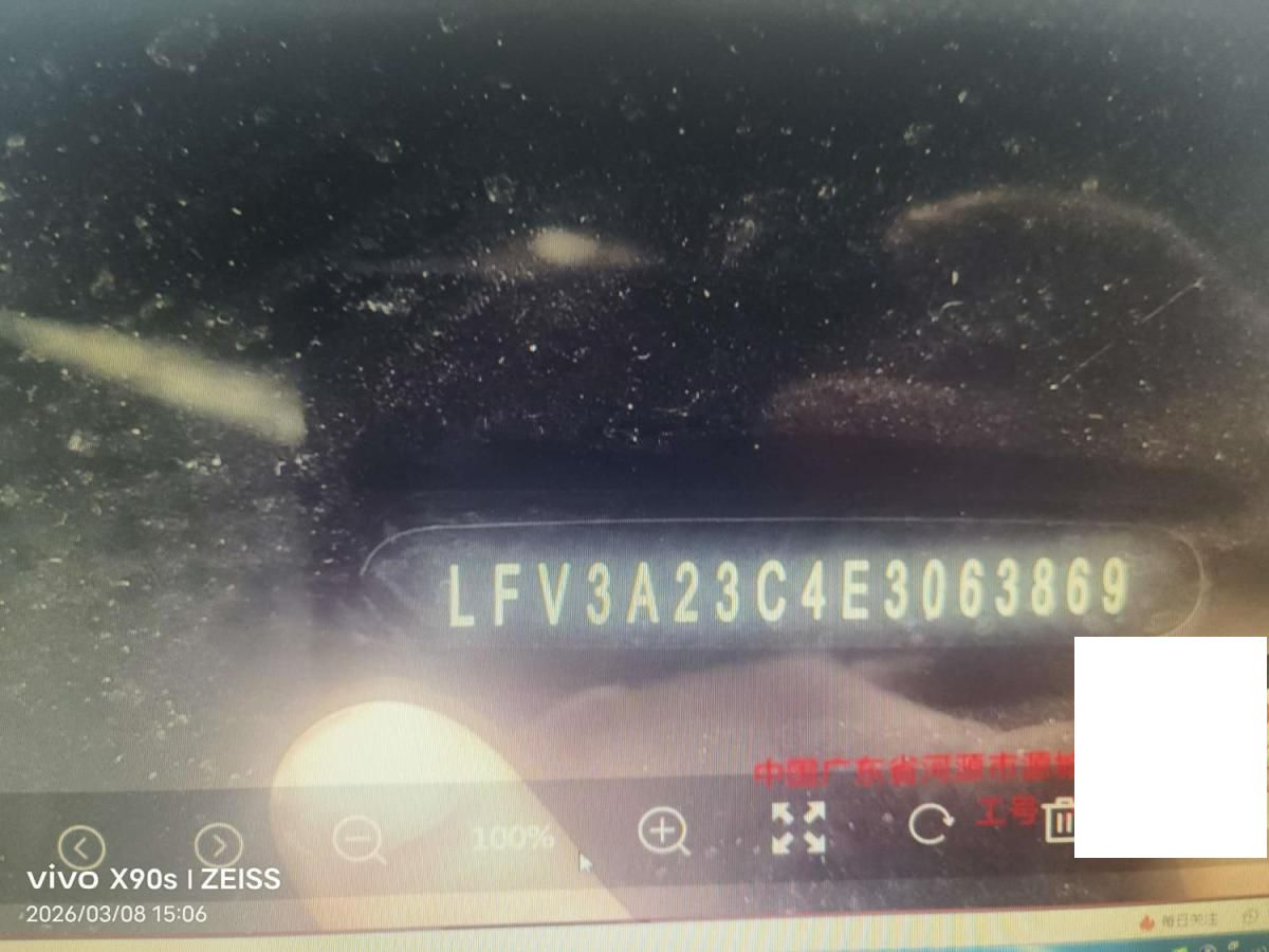 底盘号码 LFV3A23C4E3063869 变速箱类型 自动