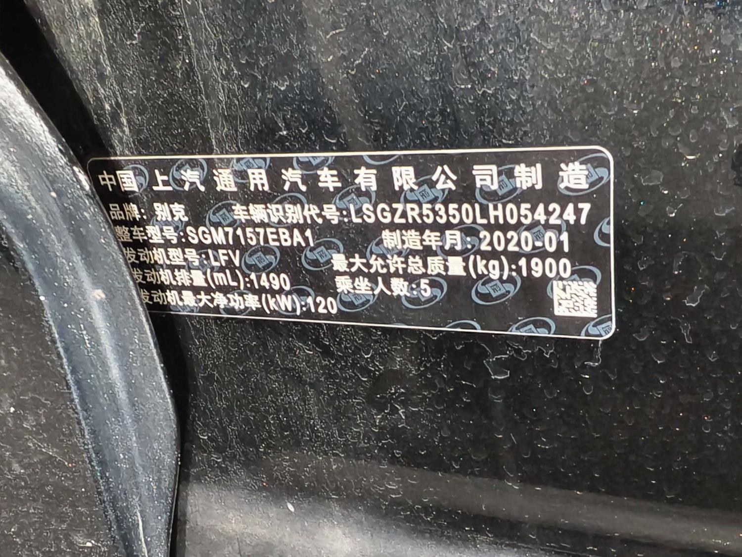 初次登记日期 2020-04-20 车辆名称 别克 君威