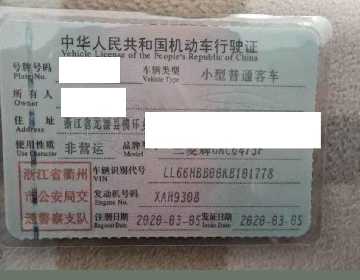 车辆归属地 浙江省衢州市 车辆停放仓库 上海市闵行区闵行区