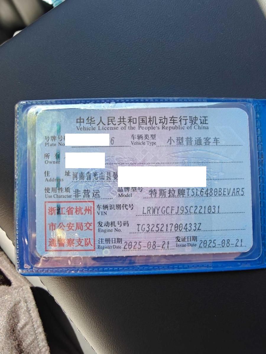 初次登记日期 2025-08-21 车辆名称 特斯拉 Model
