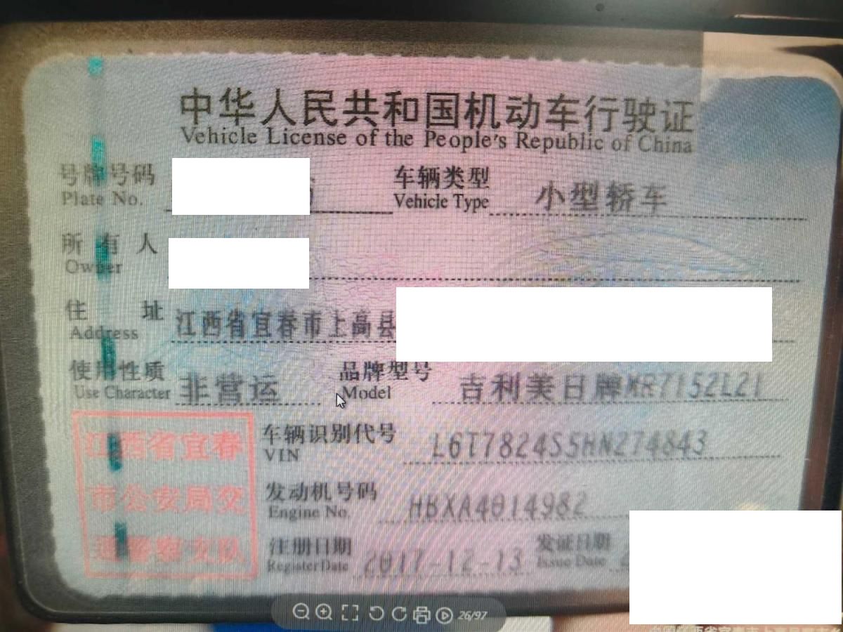车牌号 赣****** 品牌 吉利