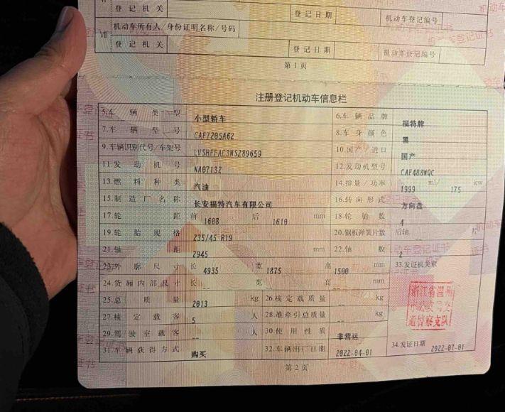 初次登记日期 2022-07-01 车辆名称 福特 蒙迪欧