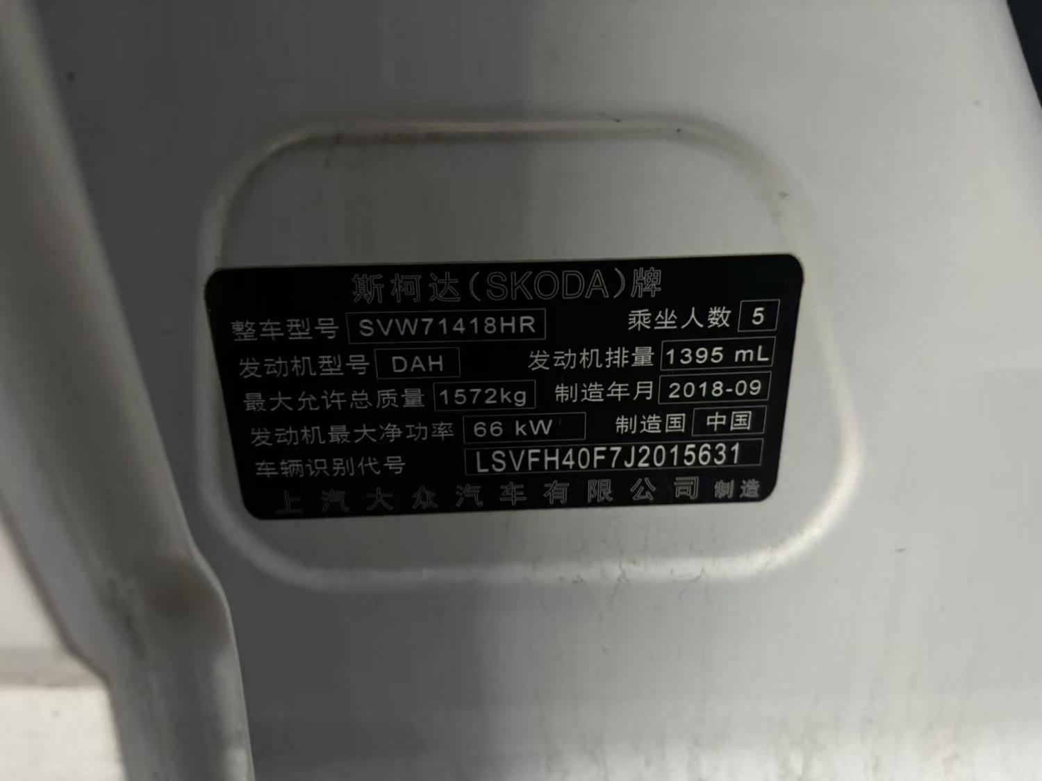 车牌号 沪****** 品牌 斯柯达