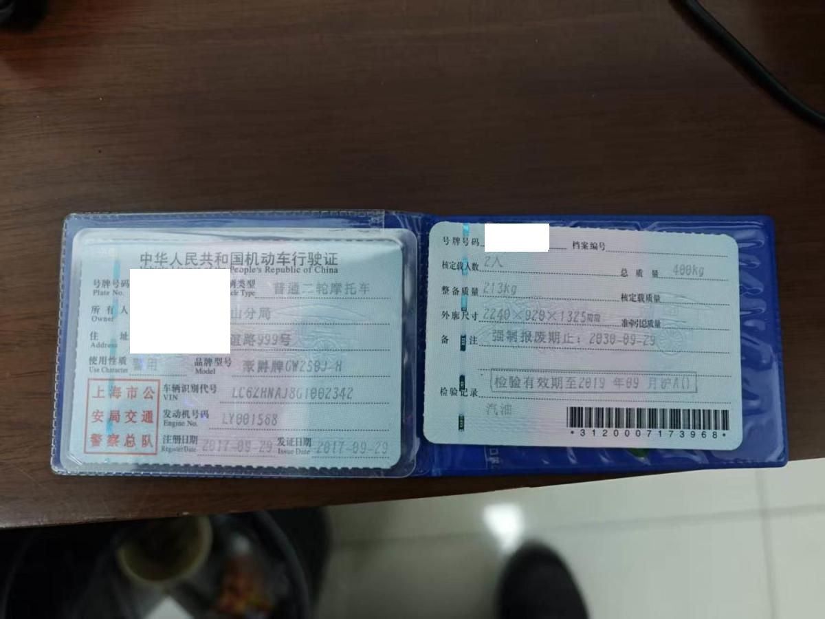 初次登记日期 2017-09-29 车辆名称 豪爵牌