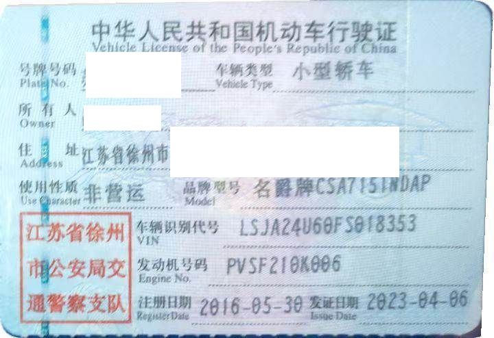 车辆归属地 江苏省徐州市 车辆停放仓库 上海市徐汇区徐汇区