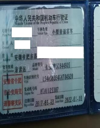 车辆归属地 安徽省合肥 车辆停放仓库 安徽省合肥市合肥市