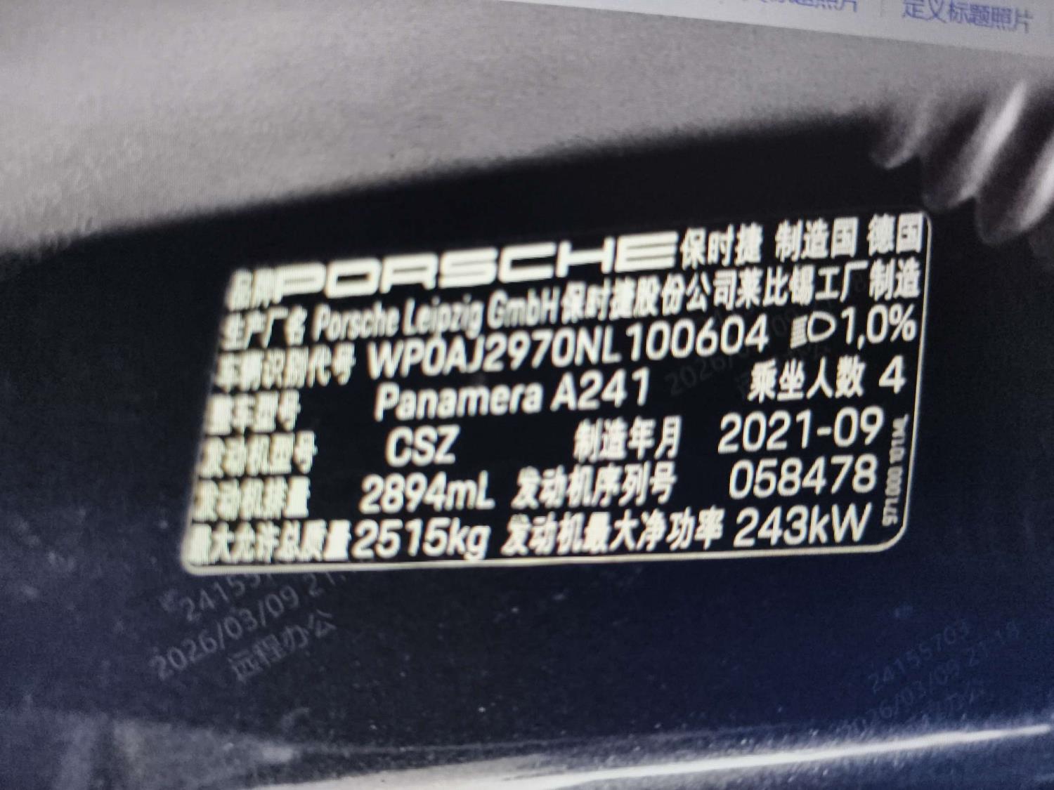 初次登记日期 2022-01-06 车辆名称 保时捷 Panamera