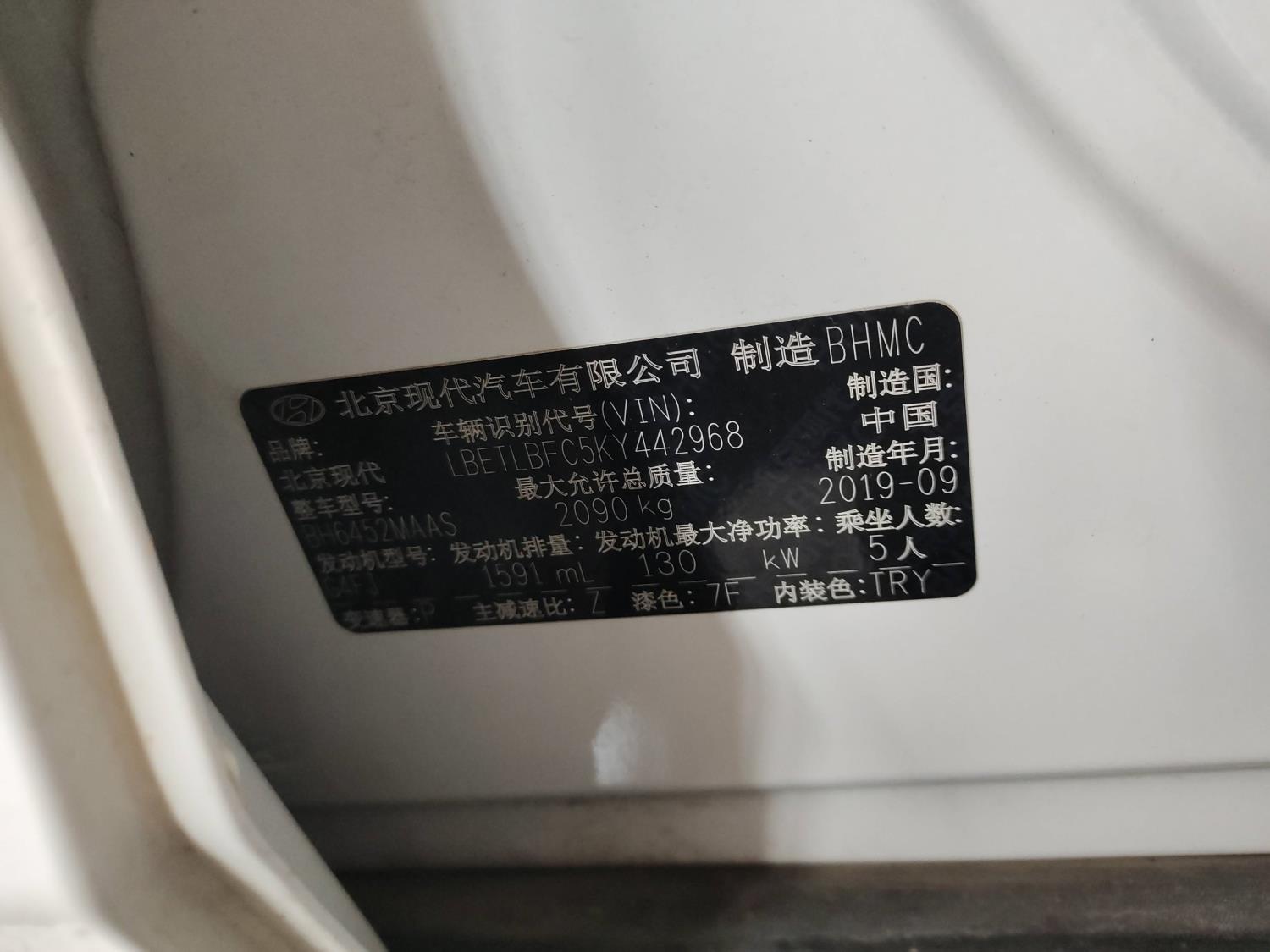 底盘号码 LBETLBFC5KY442968 变速箱类型 自动