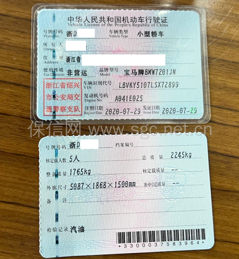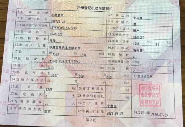 初次登记日期 2020-07-29 车辆名称 宝马530Li