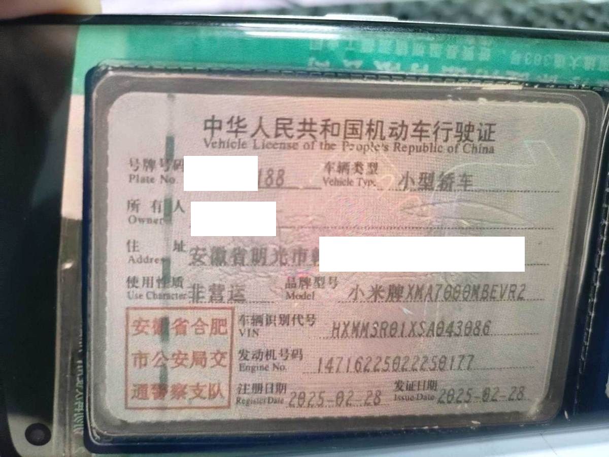 车牌号 皖****** 品牌 小米