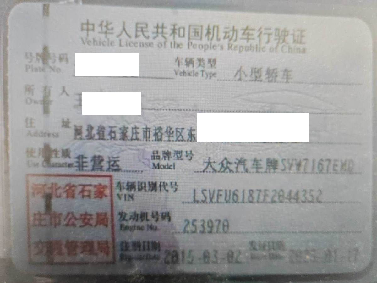 车牌号 冀****** 品牌 大众