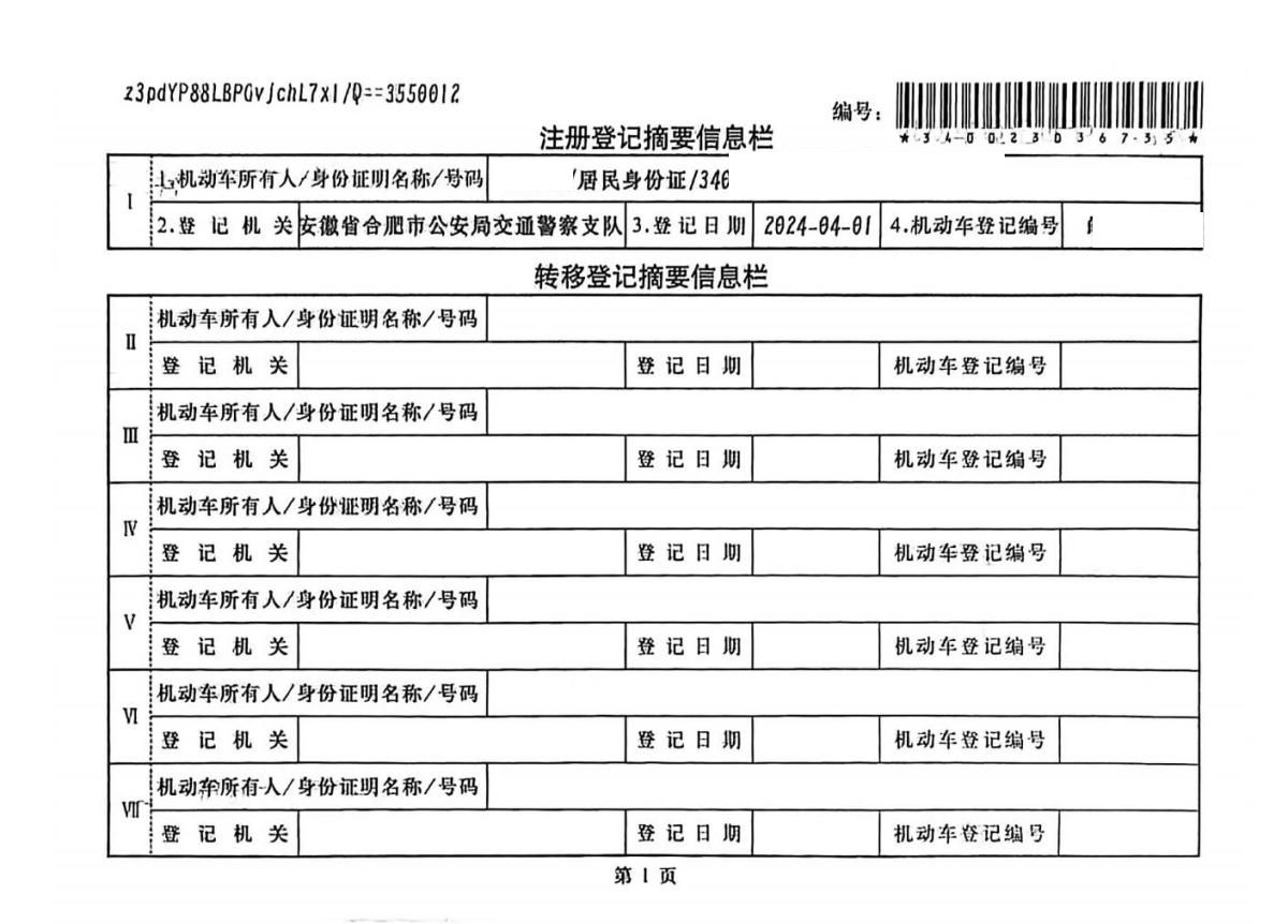 车辆归属地 安徽省合肥 车辆停放仓库 安徽省合肥市合肥市