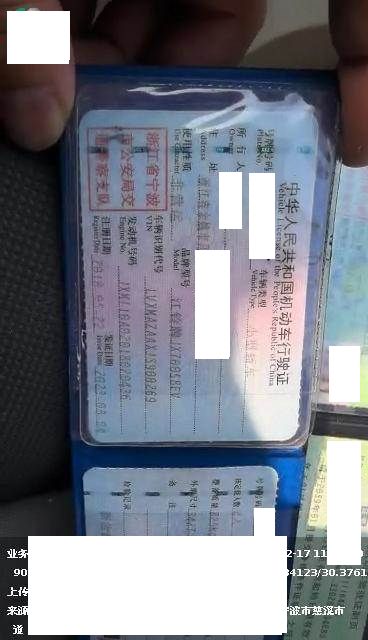 车辆归属地 浙江省宁波市 车辆停放仓库 浙江省宁波市慈溪市