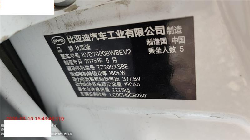 初次登记日期 2025-06-30 车辆名称 比亚迪 海豹