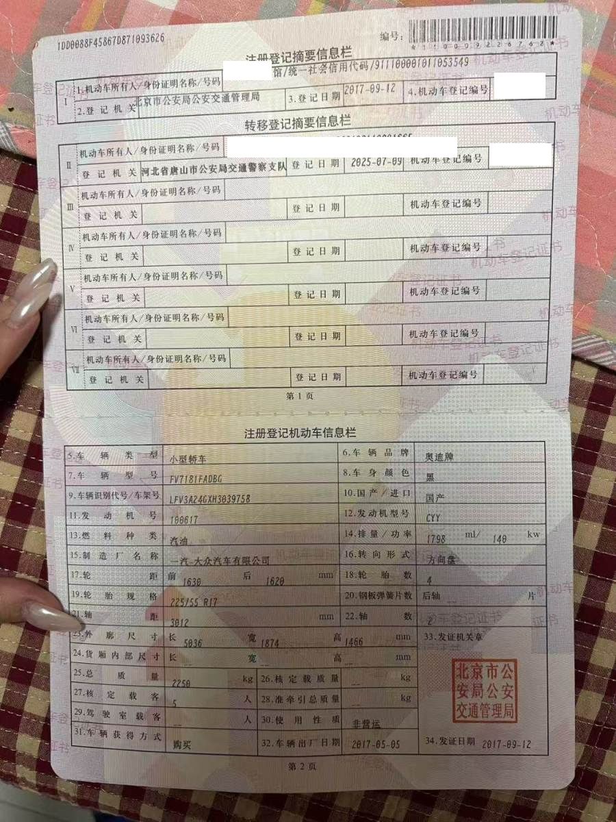 车牌号 冀****** 品牌 奥迪