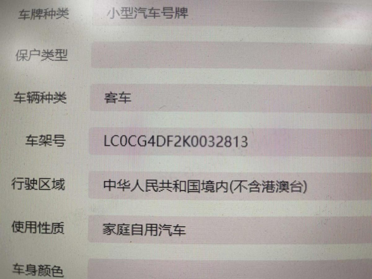 底盘号码 LC0CG4DF2K0032813 变速箱类型 自动