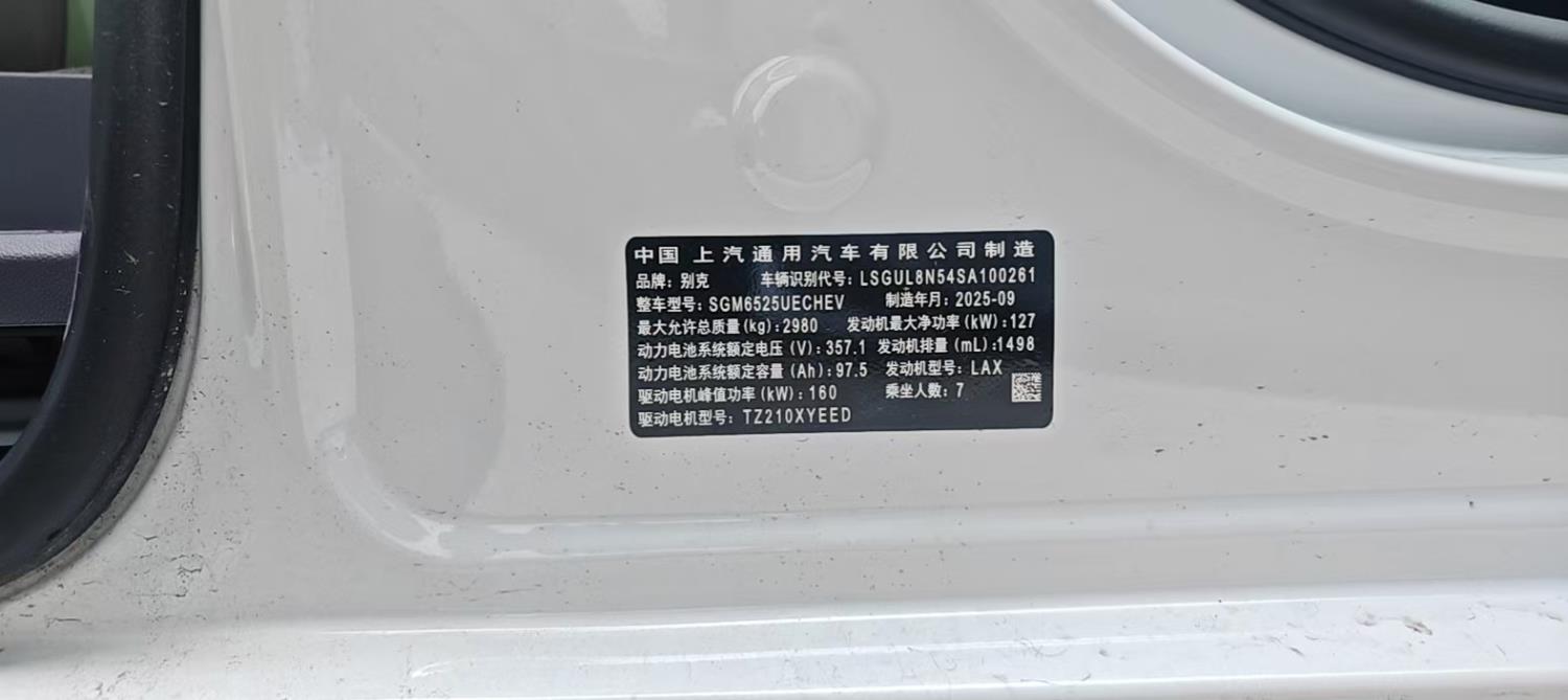初次登记日期 2025-10-22 车辆名称 别克 新能源