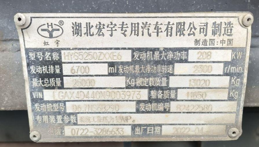 初次登记日期 2022-04-18 车辆名称 中燕 中燕洒水车