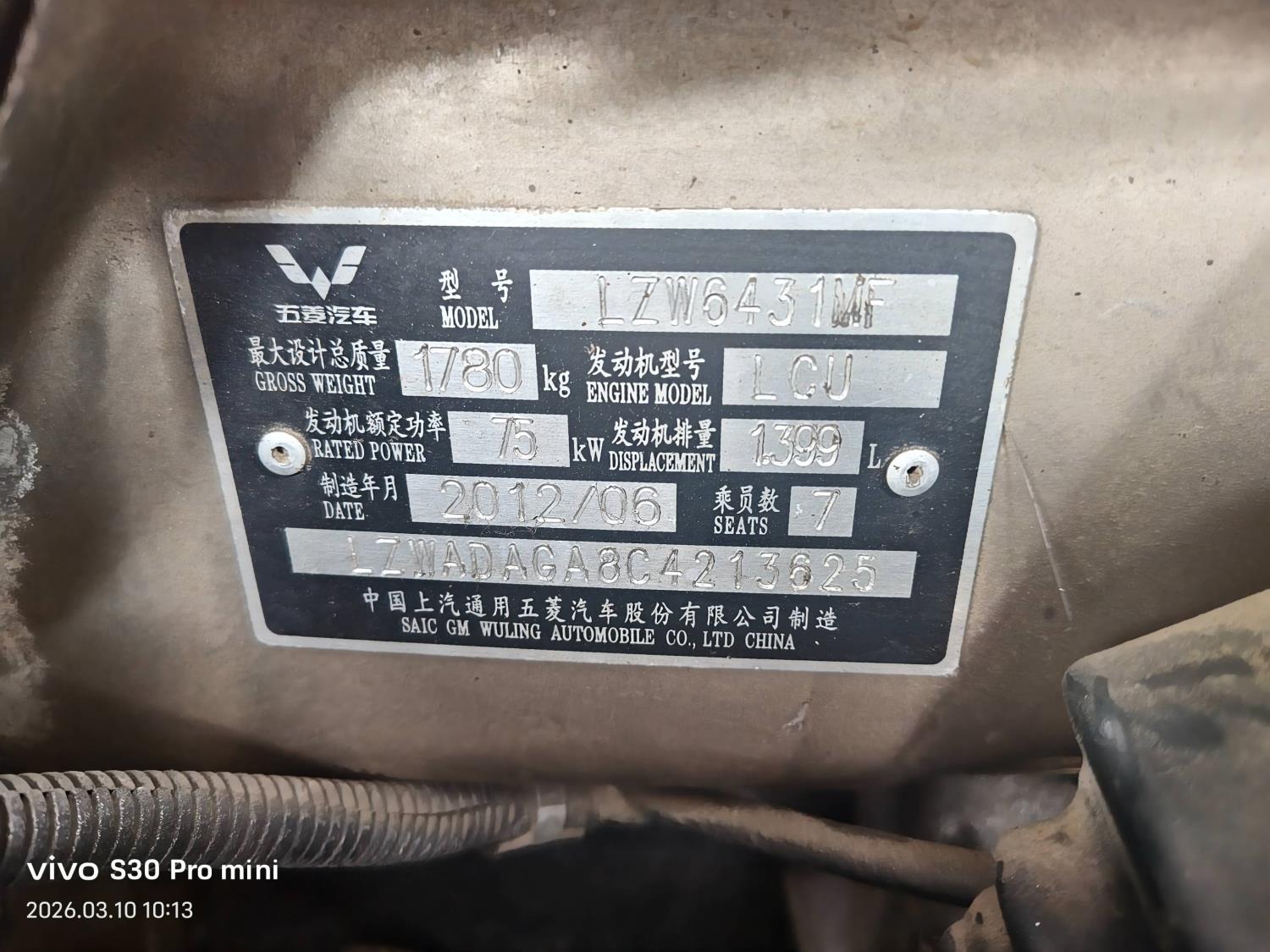 初次登记日期 2012-07-24 车辆名称 五菱汽车 五菱宏光