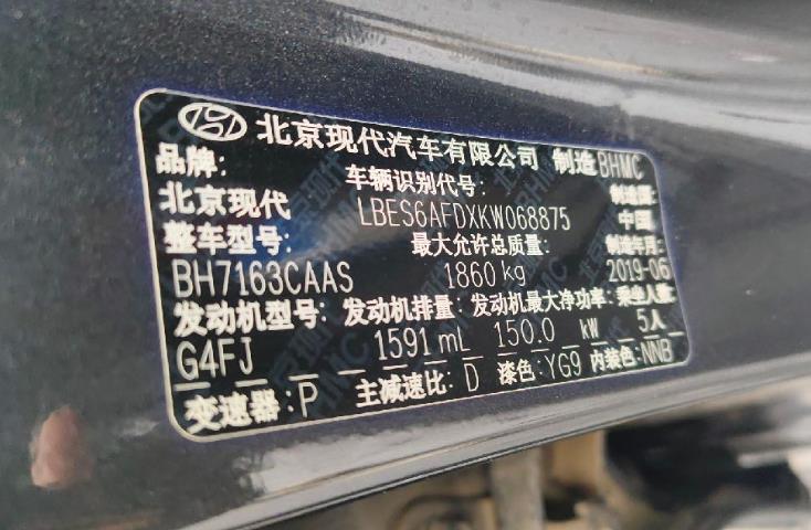 初次登记日期 2019-07-05 车辆名称 现代 菲斯塔