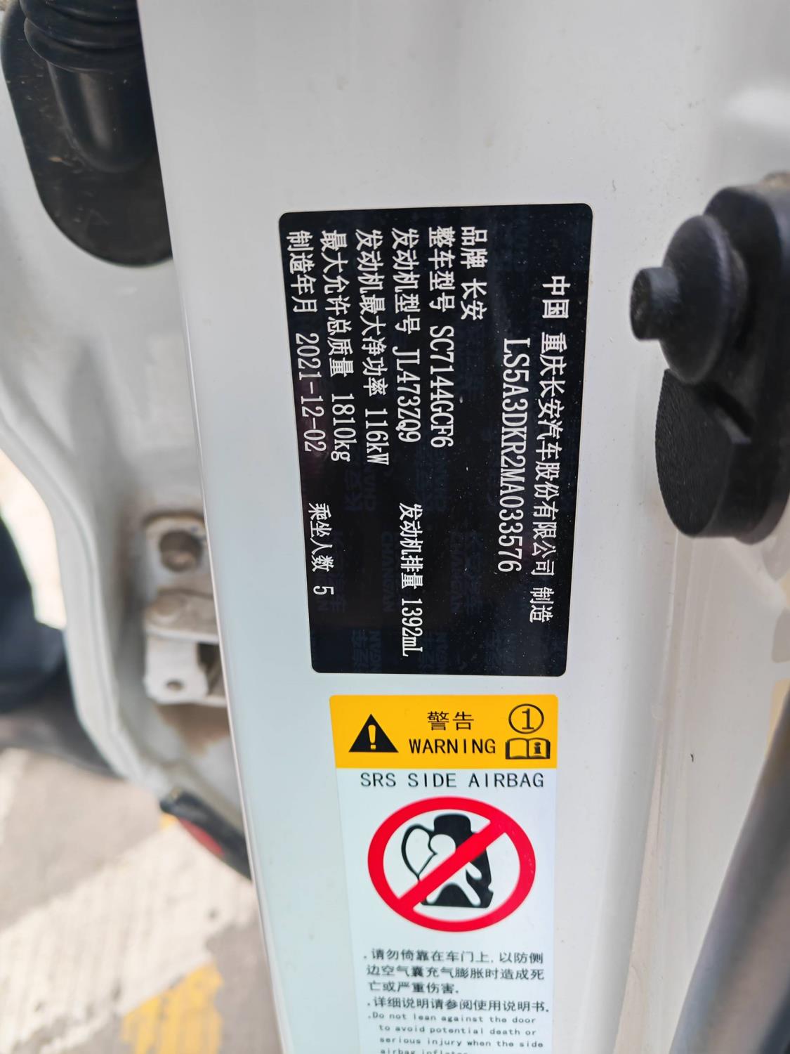 底盘号码 LS5A3DKR2MA033576 变速箱类型 自动