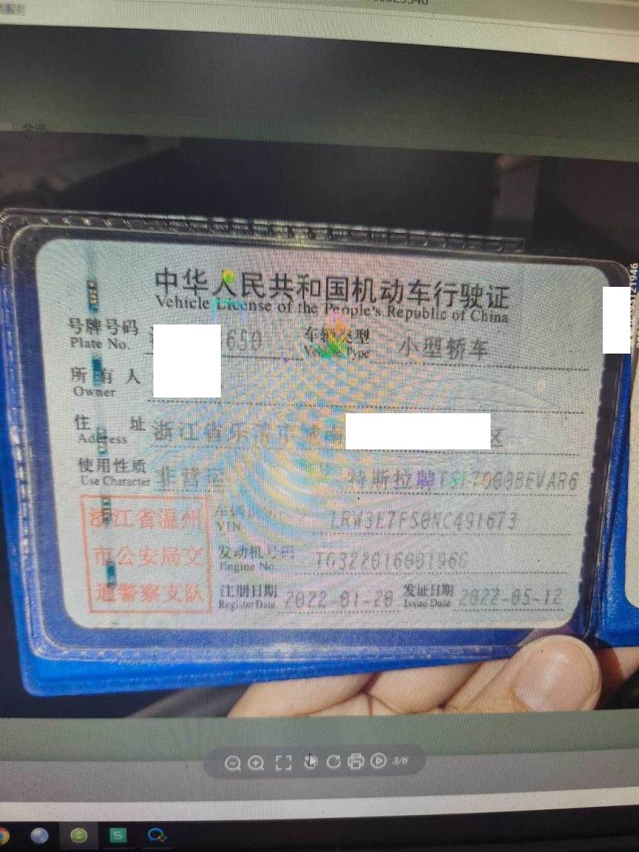 初次登记日期 2022-01-20 车辆名称 特斯拉 Model