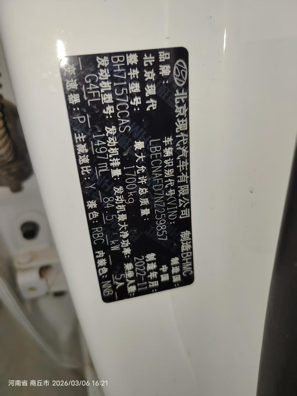 底盘号码 LBECNAFD7NZ259857 变速箱类型 自动