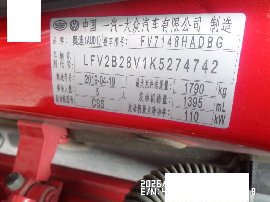 初次登记日期 2019-05-14 车辆名称 奥迪A3