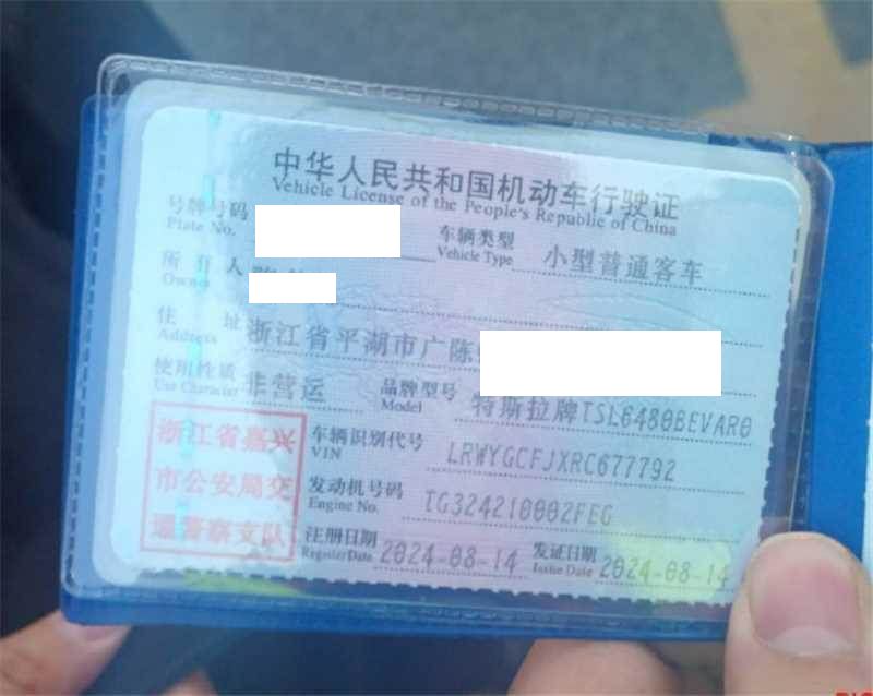初次登记日期 2024-08-14 车辆名称 特斯拉 Model