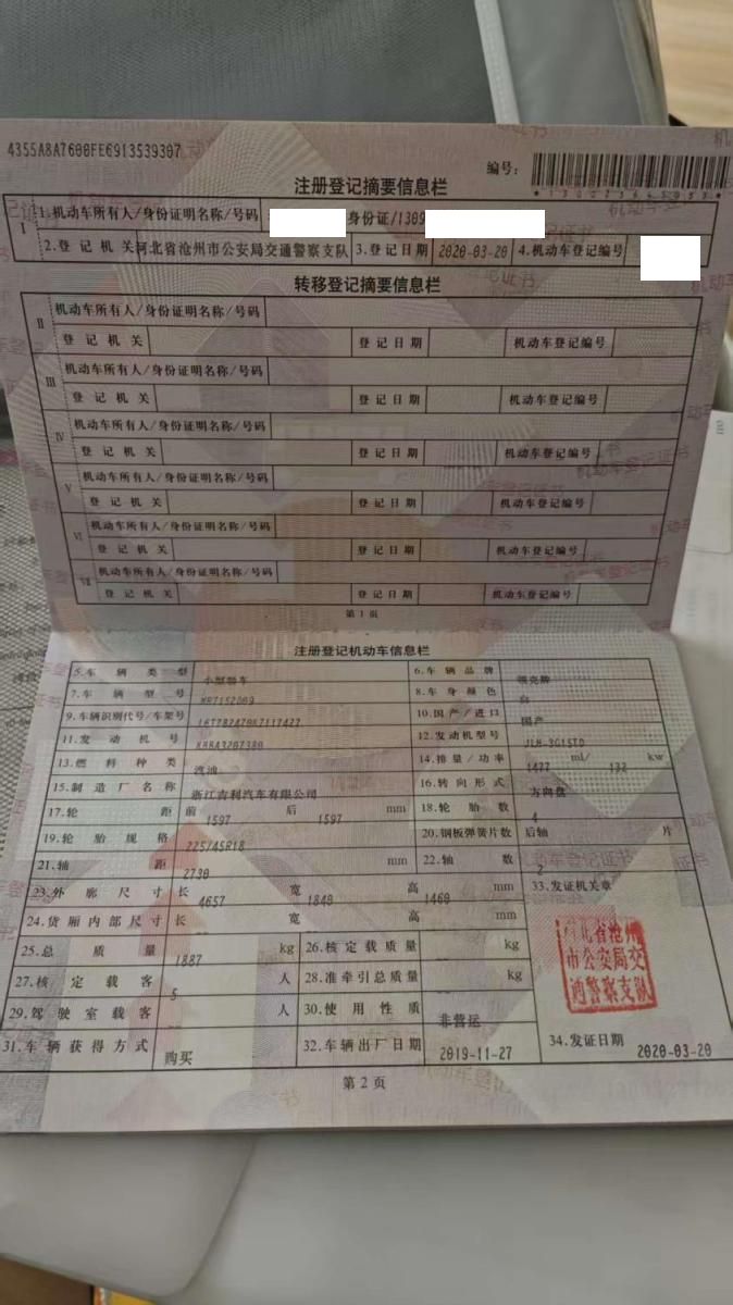 车牌号 冀****** 品牌 领克